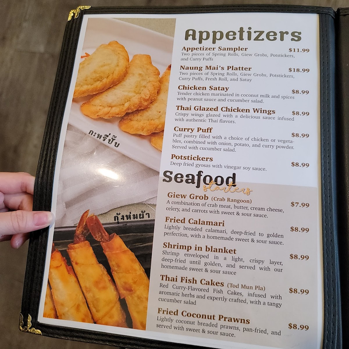 For mains, don't miss the Orange Dish or Thai Teriyaki, both packed with vibrant vegetables, grilled meats, and aromatic stir-fried goodness, each at $12.99. Fish lovers can savor the Pla Lad Prik, a crispy fried trout adorned with a medley of vegetables and basil for $16.99.